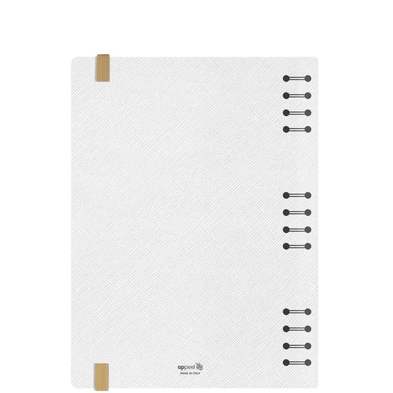 Diary with 360° folding capability and an Appeel technology cover made from apples. The ecological choice in spiral diaries, bears the Appeel mark on the back cover.