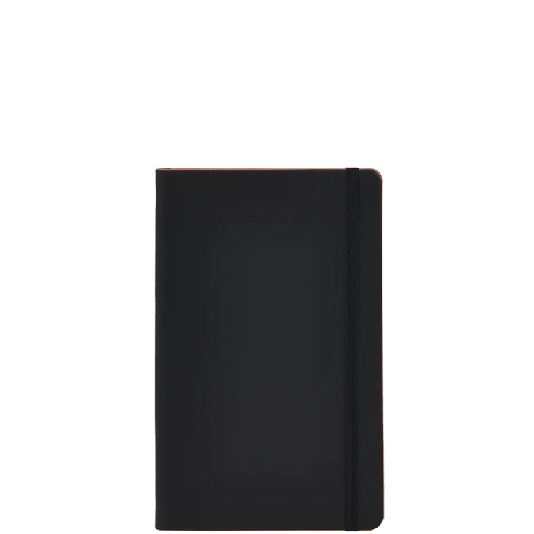 Minimal black cover and edge print on the Black Laser notebook reveal sophisticated elegance. But the true star is the colorful lacquered edge trim, inspired by laser brightness, for a refined, modern aesthetic.
