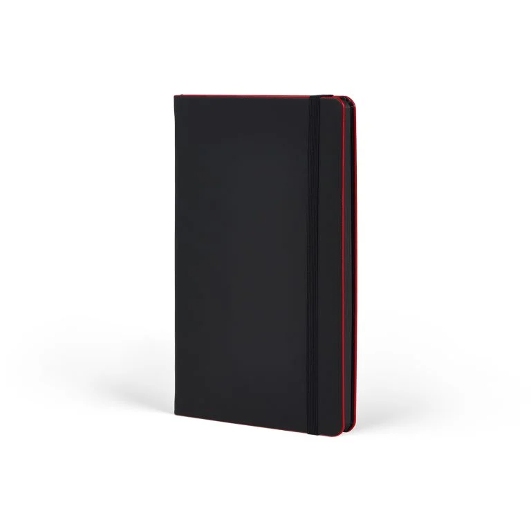 Minimal black cover and edge print on the Black Laser notebook reveal sophisticated elegance. But the true star is the colorful lacquered edge trim, inspired by laser brightness, for a refined, modern aesthetic.