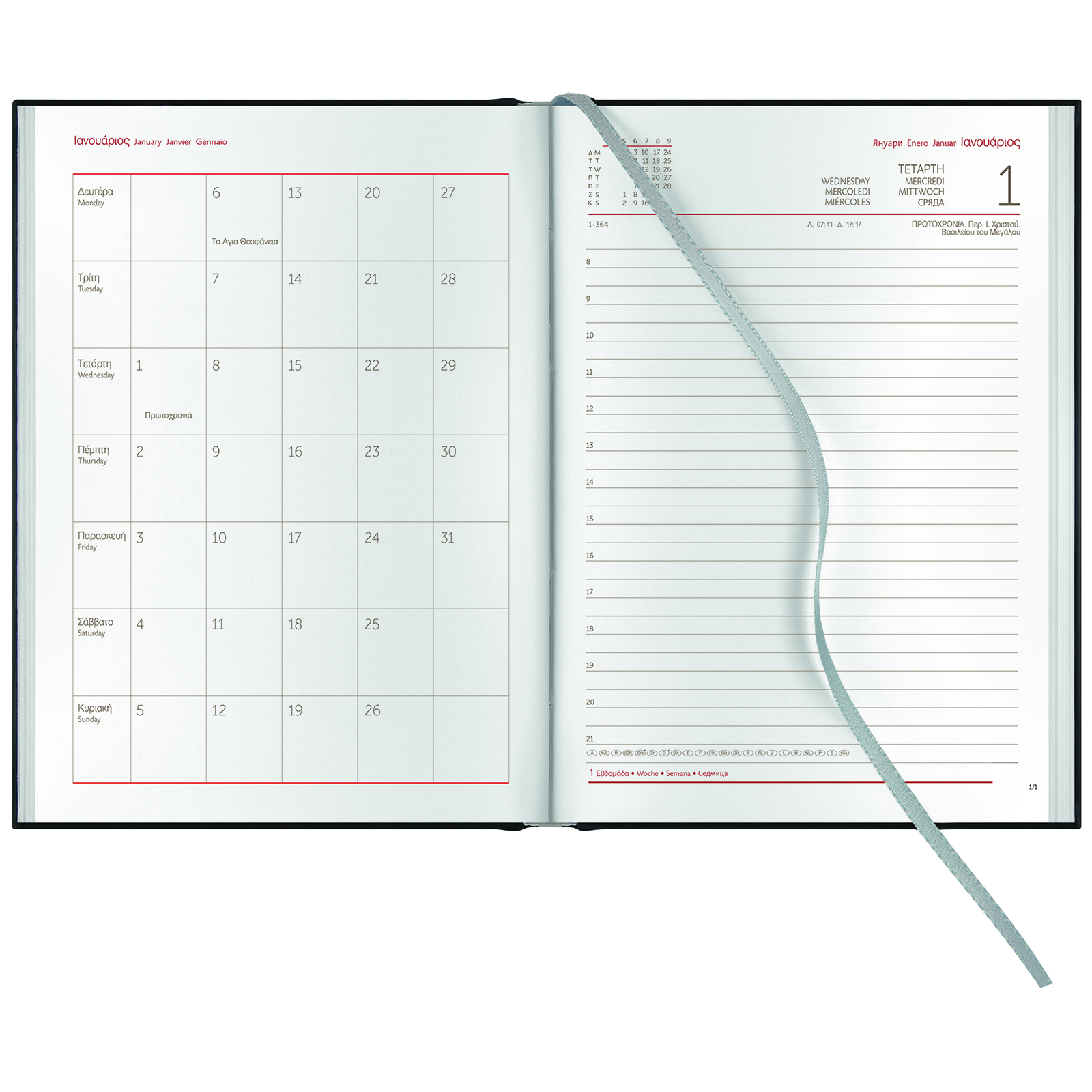 Made from certified FSC paper,Flex flexible cover,8mm elastic band matching the stitching,Pen holder on the spine,Bookmark,Perforated corners,Embossed cover printing