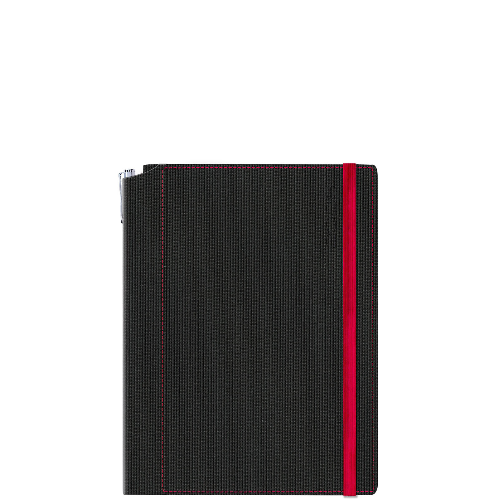 Made from certified FSC paper,Flex cover,8mm elastic band matching the stitching,Pen holder on the spine,Bookmark,Perforated corners,Embossed cover printing