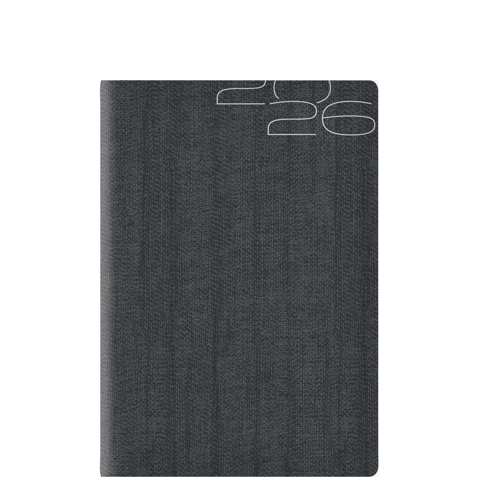 Page-a-day calendar with Saturday/Sunday on a separate page. With a Kashmir-style fabric cover.