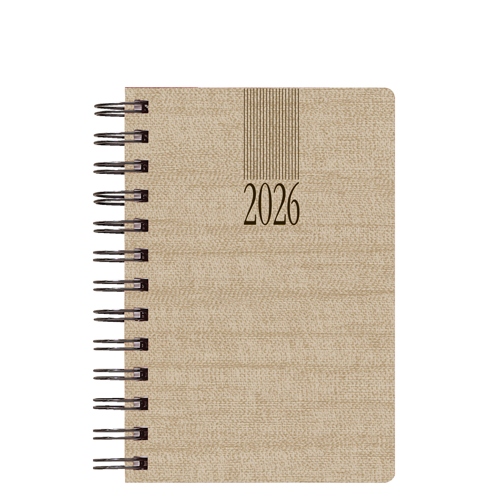 Collection of 2026 spiral-bound diaries. Available in 3 basic sizes, with a flexible Corvara cover with fabric texture. With Saturday/Sunday on a separate page.