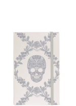 Lace Collection notebook with a light grey satin cover and an embroidery effect design