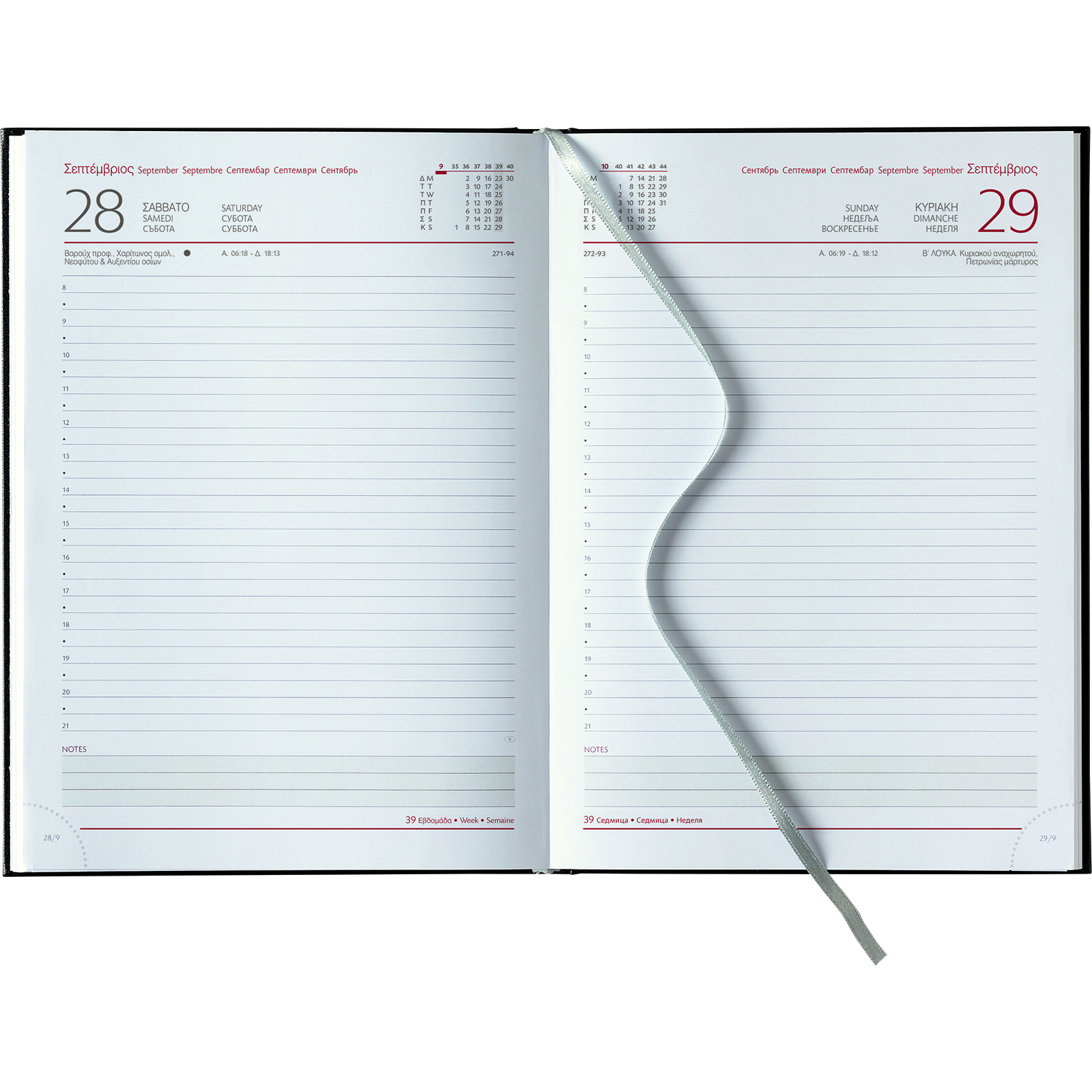 Made from certified FSC paper,Saturday/Sunday on separate pages,Bookmark,Perforated pages,Foil color cover printing